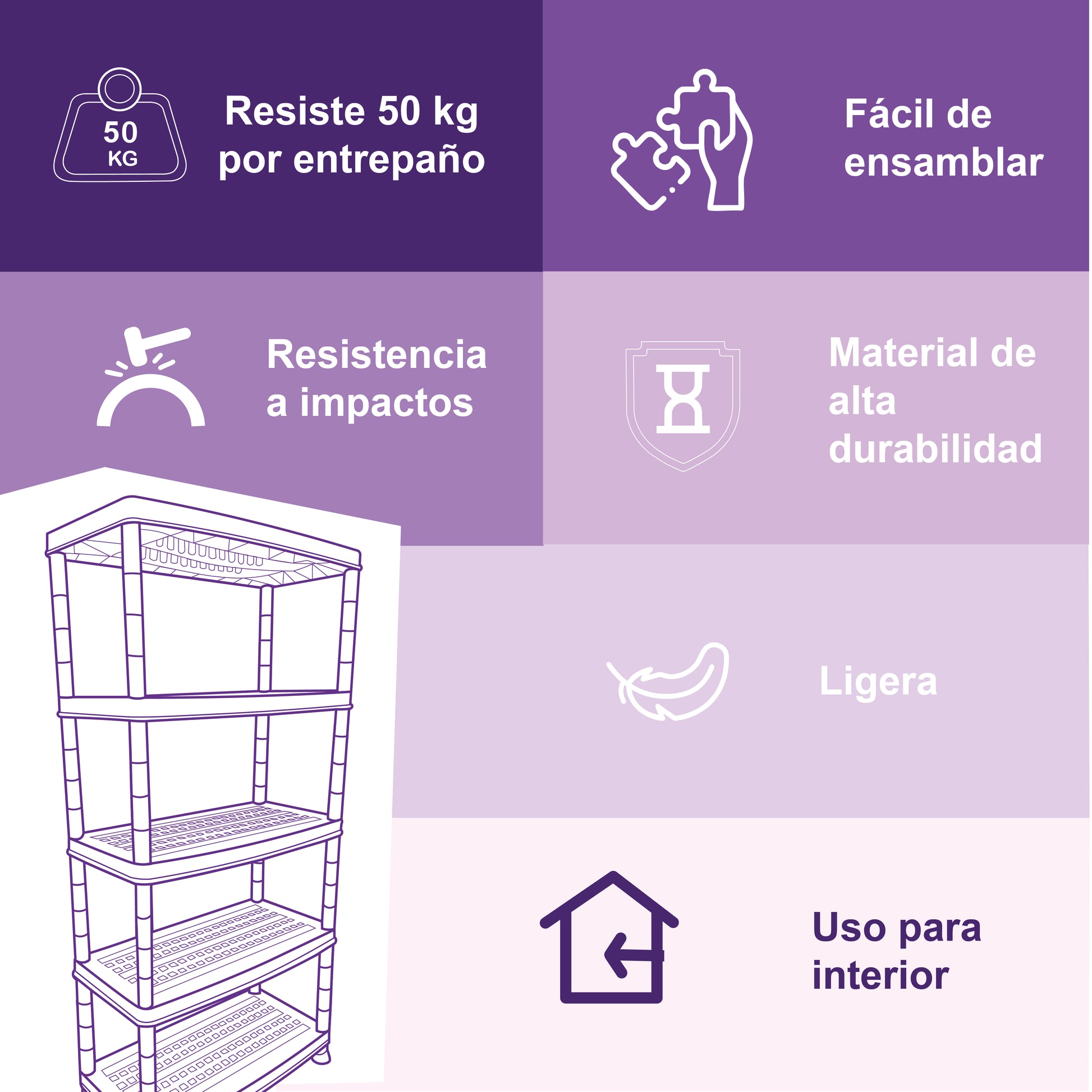 • Alta resistencia: Cada entrepaño resiste hasta 50kg.