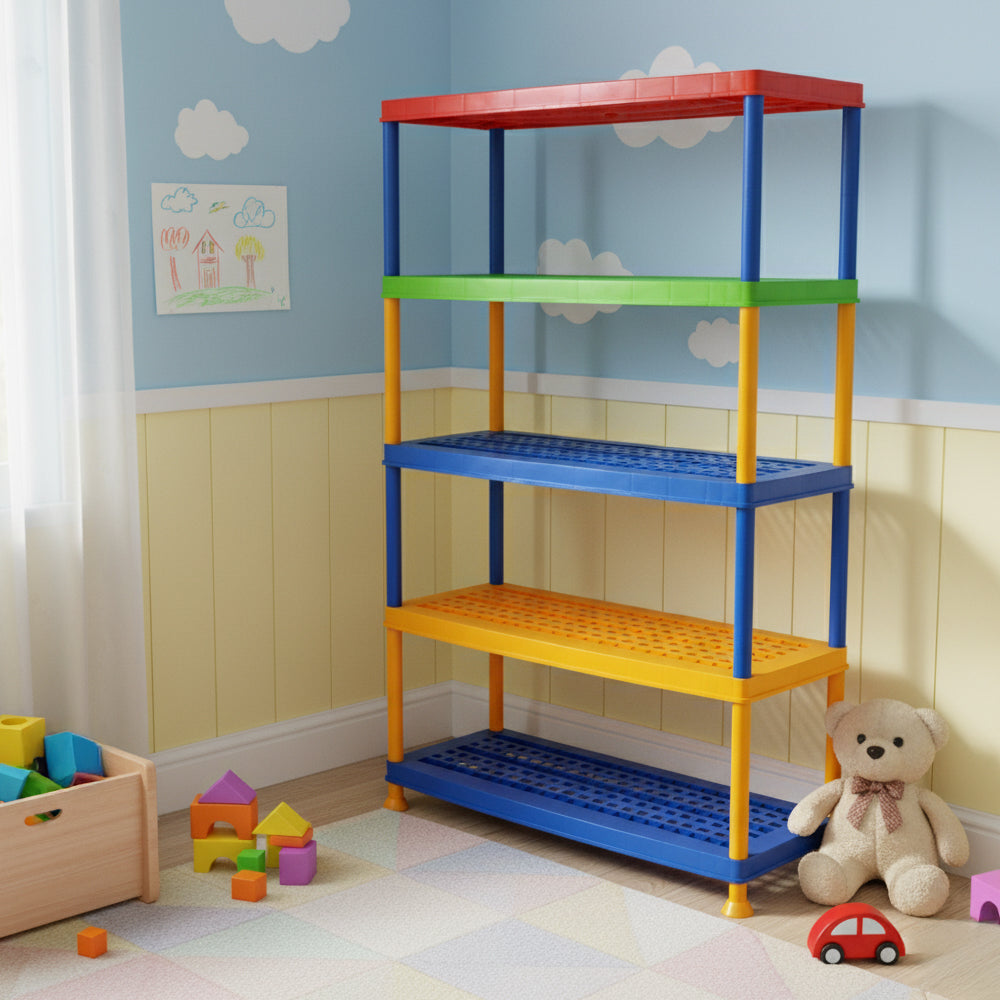 Resuelve el problema de almacenamiento con nuestro estante juguetero de 5 colores que combina alta resistencia con un diseño vibrante y atractivo para tus niños.